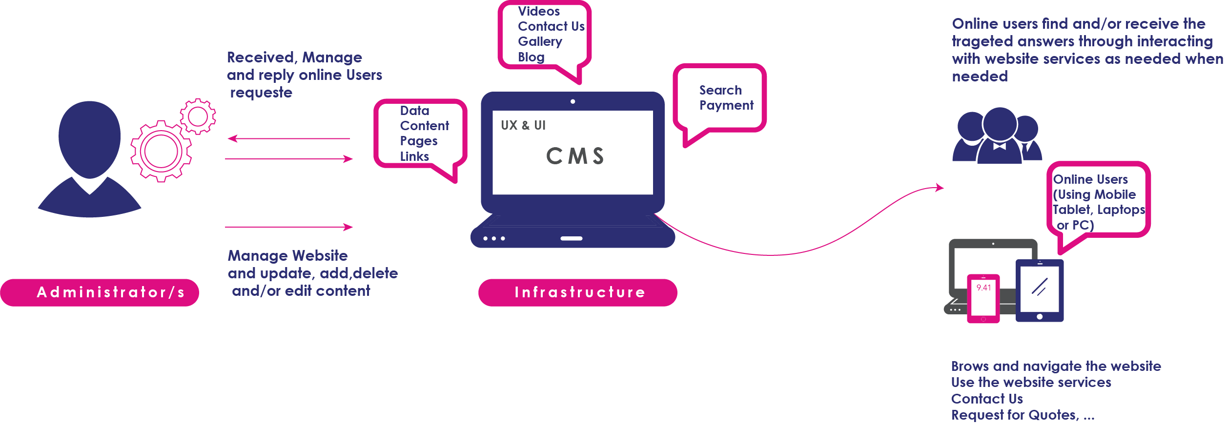 Transition Tech has a the right experience to make your ideas come alive and online, through our software development capabilities and through using latest web based content management system which will result an eye catching, user friendly, mobile responsive and easy to edit and update Website. Where organizations can easily manage creating, editing and publishing heir own online content in future without any requirements for additional coding capabilities.